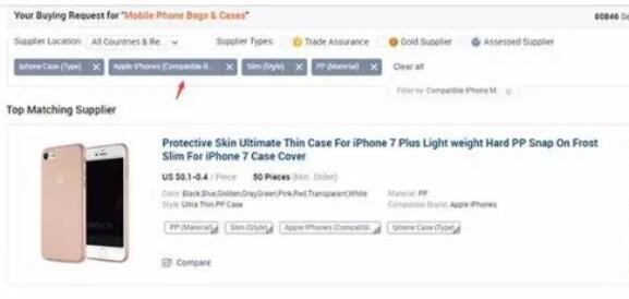 搜索關(guān)鍵詞如iphone 7 case,Ctrl+End定位到頁面最下面Popular Buying Requests for “iphone 7 case”版塊,點(diǎn)擊一家供應(yīng)商打開