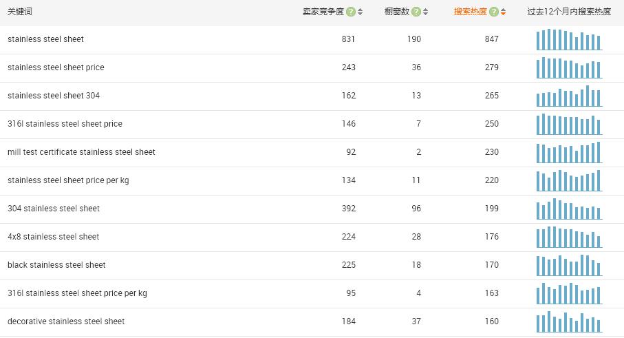 如圖,如果我們選關(guān)鍵詞 stainless steel sheet,熱度確實(shí)很高,但是已經(jīng)有190個(gè)櫥窗產(chǎn)品了,我們?cè)侔l(fā)布的話,很難在首頁(yè),競(jìng)爭(zhēng)太激烈。那就需要用到我的方法去發(fā)布櫥窗產(chǎn)品了。