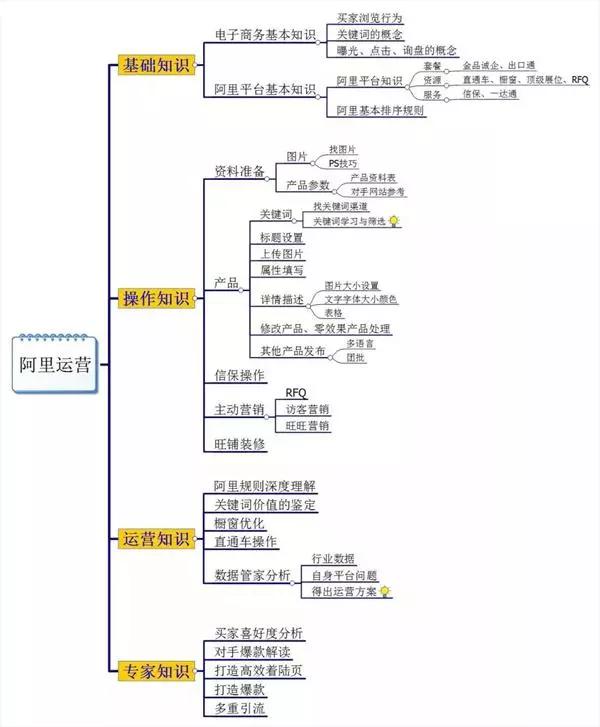 阿里國際站運營,需要的是清晰的運營思路和營銷技巧,前者能讓我們清楚地把握運營方向,后者能讓我們的運營想法實踐成為可能。為了便于各位小伙伴清楚地了解阿里國際站運營思路,小編用了一張思維導圖更好地幫助大家了解。