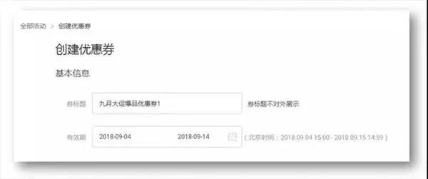點擊創(chuàng)建優(yōu)惠券,這里填寫優(yōu)惠券標題、有效期、面額、數(shù)量、適用商品、適用人群等,創(chuàng)建完成后該優(yōu)惠券就會在設置的時間生效啦。這里可以把自己正在重點打的爆品放到優(yōu)惠券的適用商品里,迅速提升曝點返。
