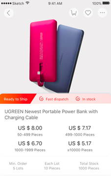 2,買(mǎi)家端Alibaba.com APP產(chǎn)品詳情頁(yè),產(chǎn)品增加ready to ship的標(biāo)簽