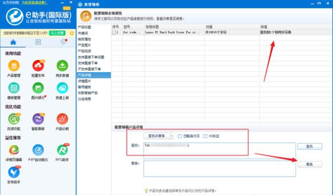 使用軟件:e助手國際版   批量修改產(chǎn)品詳情