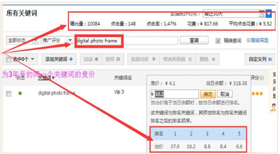 現(xiàn)在我們選擇同行業(yè)同樣產(chǎn)品的2家店鋪,對同一個(gè)關(guān)鍵詞進(jìn)行P4P競價(jià)對比,看看究竟有什么差異?