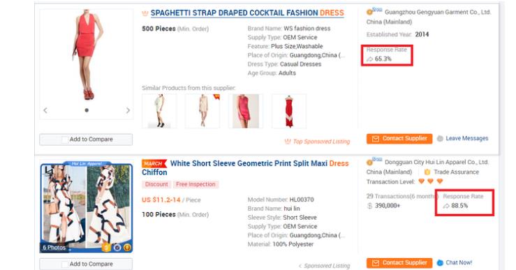 買(mǎi)家能夠在搜索產(chǎn)品的時(shí)候看到你的及時(shí)回復(fù)率:
