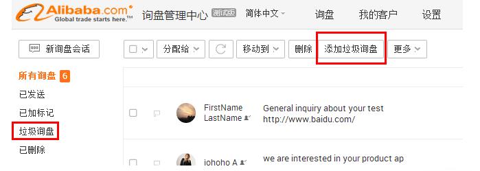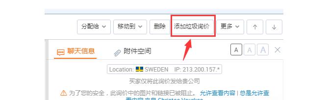 1. 垃圾詢(xún)盤(pán)(不匹配詢(xún)盤(pán)、廣告、釣魚(yú)、詐騙詢(xún)盤(pán)):操作建議是24小時(shí)內(nèi)在MA詢(xún)盤(pán)界面右上角點(diǎn)擊【添加垃圾詢(xún)價(jià)】,系統(tǒng)統(tǒng)計(jì)數(shù)據(jù)時(shí)會(huì)剔除。