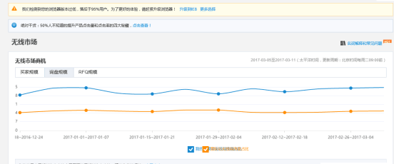 請登錄數(shù)據(jù)管家---》專題---》無線專題,主要看一下“詢盤規(guī)?!焙汀百I家規(guī)?!薄?/span>