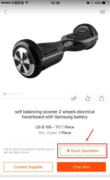 閃電報價報名成功后,您在無線買家APP端(Alibaba.com App)的產(chǎn)品詳情頁面上會新增“閃電報價”入口,如下圖: