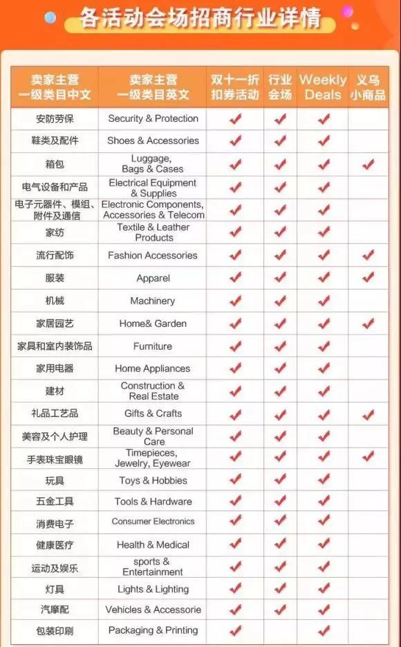 在招商說(shuō)明方面,活動(dòng)中的Weekly deals、義烏小商品會(huì)場(chǎng)與行業(yè)會(huì)場(chǎng)需要報(bào)商報(bào)品,報(bào)名商品審核通過(guò)后即自動(dòng)參與國(guó)際站雙十一折扣券(打9折)活動(dòng)。而且Weekly deals活動(dòng)商品可折扣疊加,即在weekly deals的已有折扣基礎(chǔ)上再打9折。