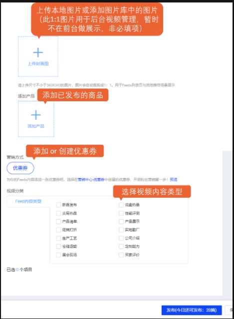 添加視頻完畢后繼續(xù)進(jìn)行產(chǎn)品、優(yōu)惠券的添加: