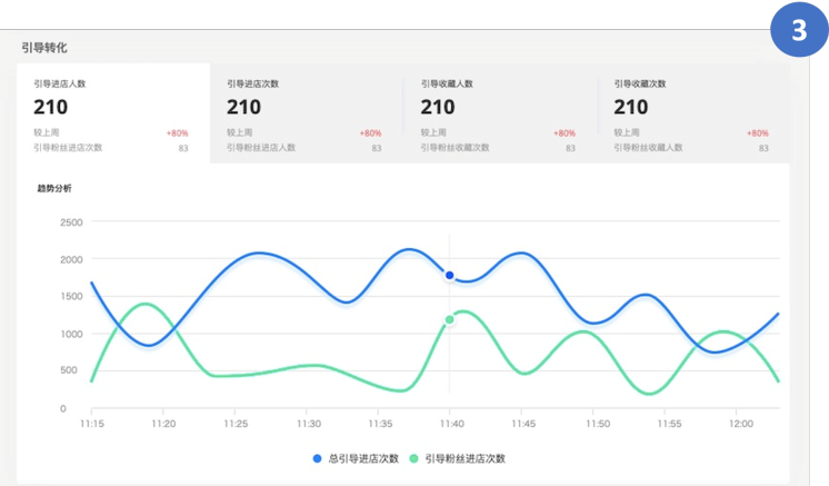 引導(dǎo)進(jìn)店次數(shù):選擇的時(shí)間范圍里,所有內(nèi)容引導(dǎo)訪問旺鋪頁面和商品詳情頁面的次數(shù)