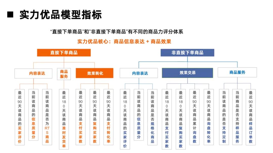 直接下單商品和非直接下單商品的數(shù)據(jù)指標也有所不一樣,非直接下單商品主要考核最近180天的數(shù)據(jù)情況,直接下單品則是考核90天的數(shù)據(jù)。主要內(nèi)容看下圖: