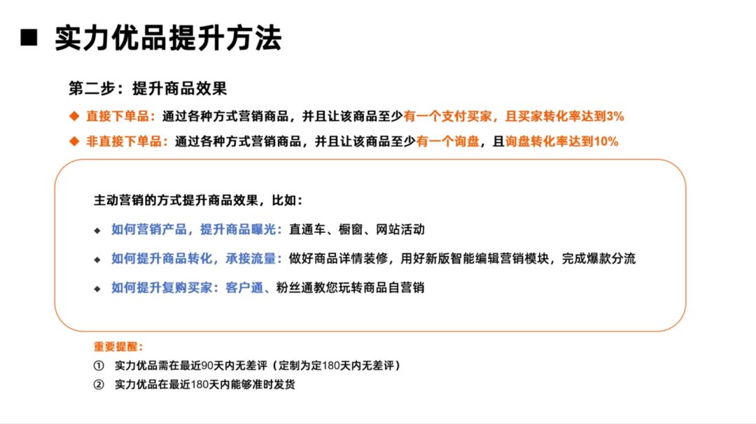 因此,讓店鋪內(nèi)更多商品達到實力優(yōu)品的層級,有利于平臺的成長,有助于獲取更多流量曝光和成交機會。