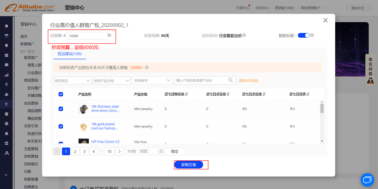 第二步:點擊方案詳情,采納方案,可選擇修改預算,最低6000元/60天