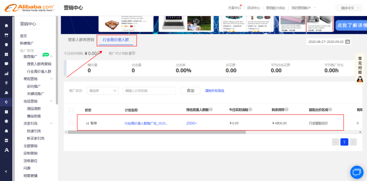 第三步:點擊左側導航,進入行業(yè)高價值人群查看計劃,可點擊計劃進行產(chǎn)品修改