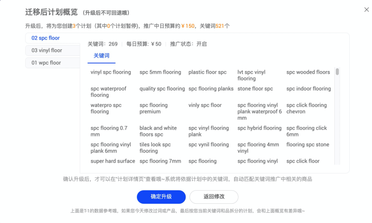 升級流程(灰度中,部分客戶會在關(guān)鍵詞計(jì)劃里看到該彈窗)