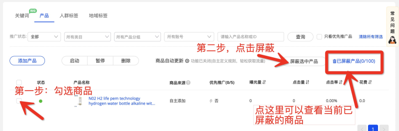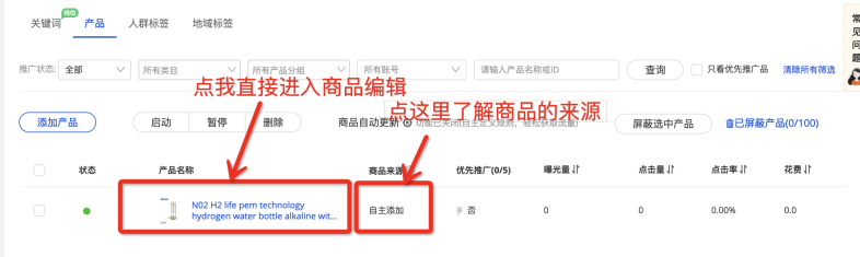 - 您的自主添加商品除非您手動(dòng)刪除,否則不會因您開啟商品自動(dòng)更新,而被踢出計(jì)劃,不被推廣;(如您自主添加的商品在屏蔽品當(dāng)中,則該產(chǎn)品還是會被推廣、產(chǎn)生花費(fèi)的哦)