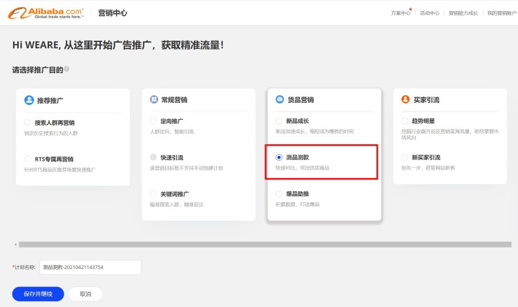 MA-營銷中心-外貿(mào)直通車-推廣管理-測(cè)品測(cè)款(或點(diǎn)此進(jìn)入)