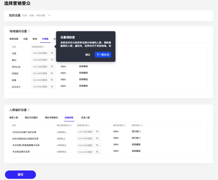 【傾斜度】越高,該市場、人群【預算分配】越高、【出價模型】越傾向于商家的選擇;