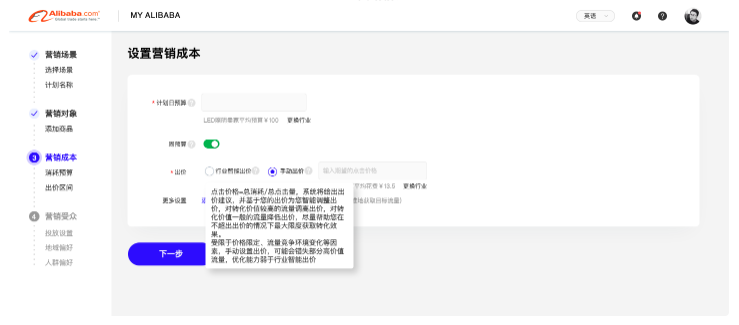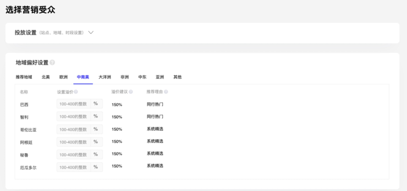 其中,針對【行業(yè)智能出價】仍然保留商家對于重點市場、重點人群的投放表達入口: