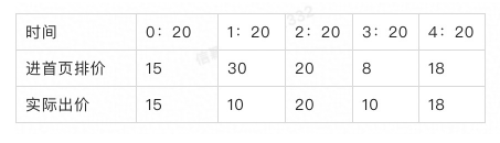 在04:20,進(jìn)入前五的出價為18元,商家在此時的出價只需要達(dá)到18即可獲得該位置,則實(shí)際出價為18元;