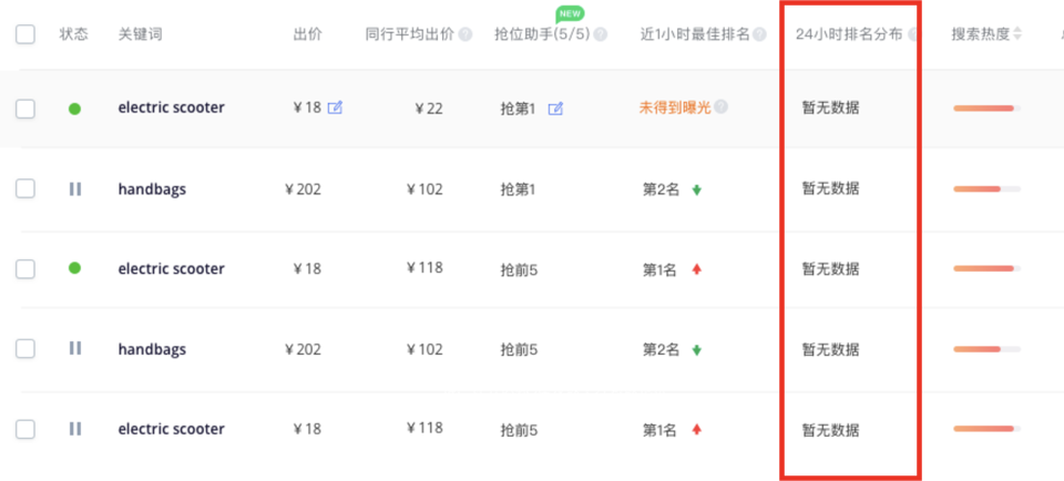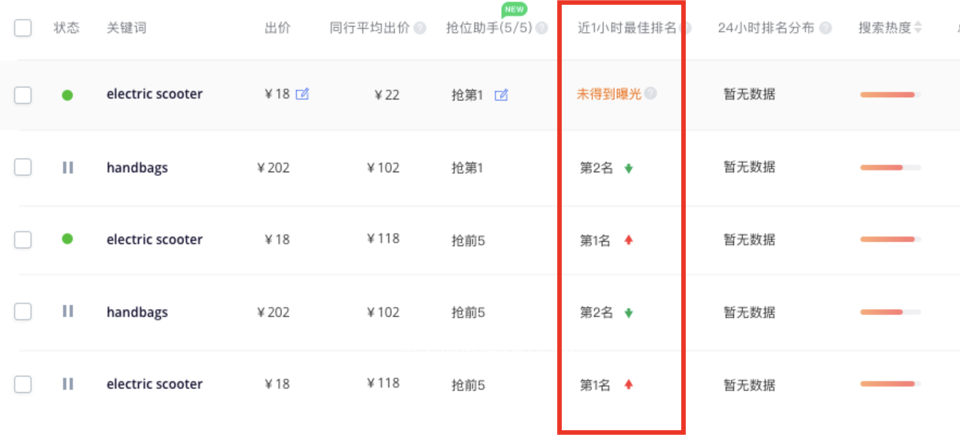 根據(jù)過去24小時排名數(shù)據(jù),來查看實(shí)際曝光位置,判斷當(dāng)前出價是否有競爭力;