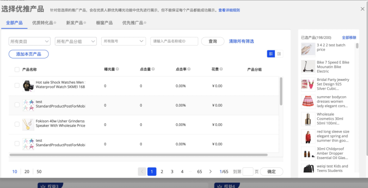 如下圖2系統(tǒng)會彈出一個選品框,選擇想要優(yōu)先推廣的商品,點擊確定即可。