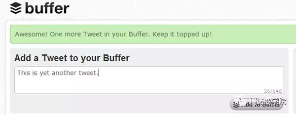 Buffer APP是近期比較熱門的一個新的Twitter應(yīng)用。Buffer的作用就是為了緩沖,而不至于讓你洪水般的信息把粉絲們嚇跑。也許這樣說你并不明白什么 意思,但是當(dāng)你使用它們的瀏覽器插件開始不斷的收藏信息發(fā)布到twitter上時,是否想過讓這些信息先放到緩沖池里,慢慢的,平緩的發(fā)到Twitter 上呢?首頁上的視頻也許能更好的幫你了解Buffer的作用。當(dāng)然Buffer也提供定時發(fā)布功能,這才是我們想要的。Buffer同時提供了 Bit.ly的賬號集成,這樣你可以很方面的跟蹤你的鏈接點擊狀況。