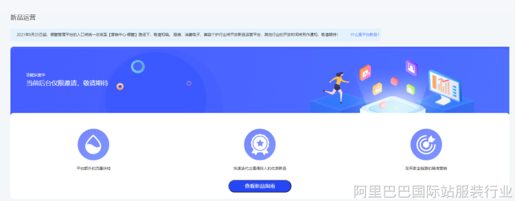 注意:如果進入該位置看不到“新品運營”界面,而是顯示以下banner圖,說明店鋪里沒有商品被判斷為新品,建議到產(chǎn)品運營工作臺中,按“新品定招”開頭的主題發(fā)品。
