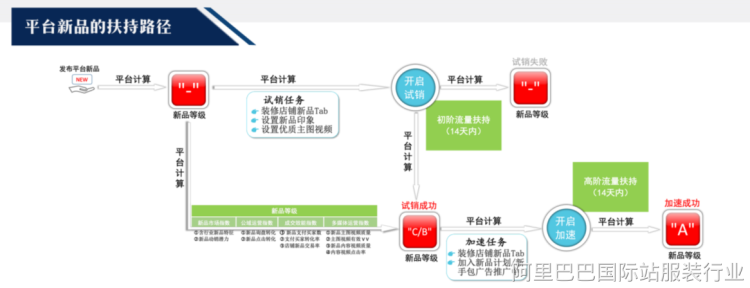 權(quán)益:滿足新品定義的品即為潛力新品,獲得14天的初階流量扶持,14天后如果試銷成功則可成為“高潛新品”或繼續(xù)保持“潛力新品”,獲得14天的高階流量扶持,如加速成功則成為“實力優(yōu)品”。