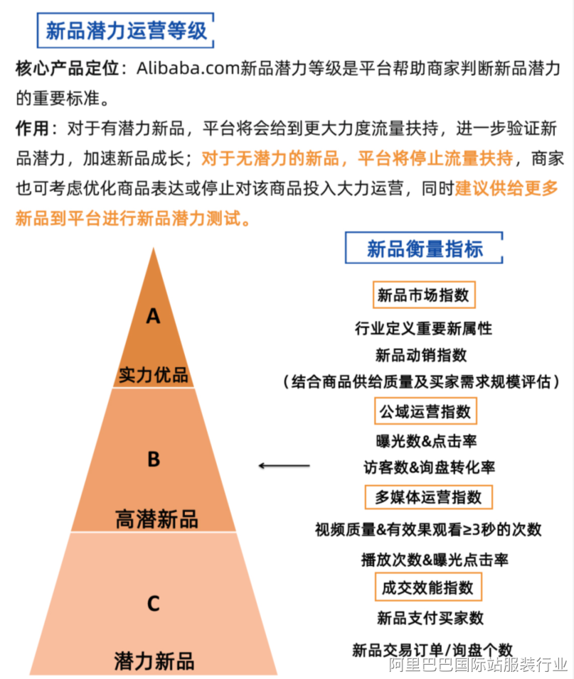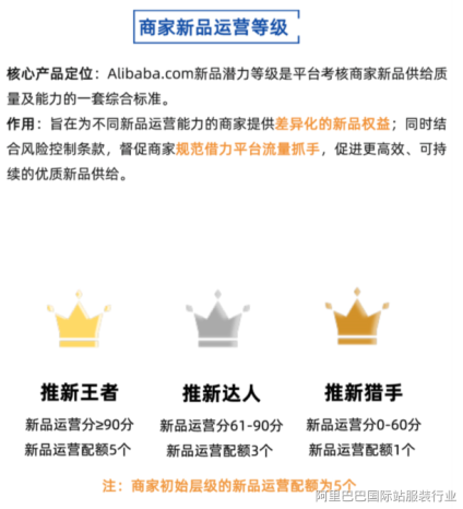 新品相關(guān)的等級從兩個維度,分為新品潛力等級、商家的新品運營等級。